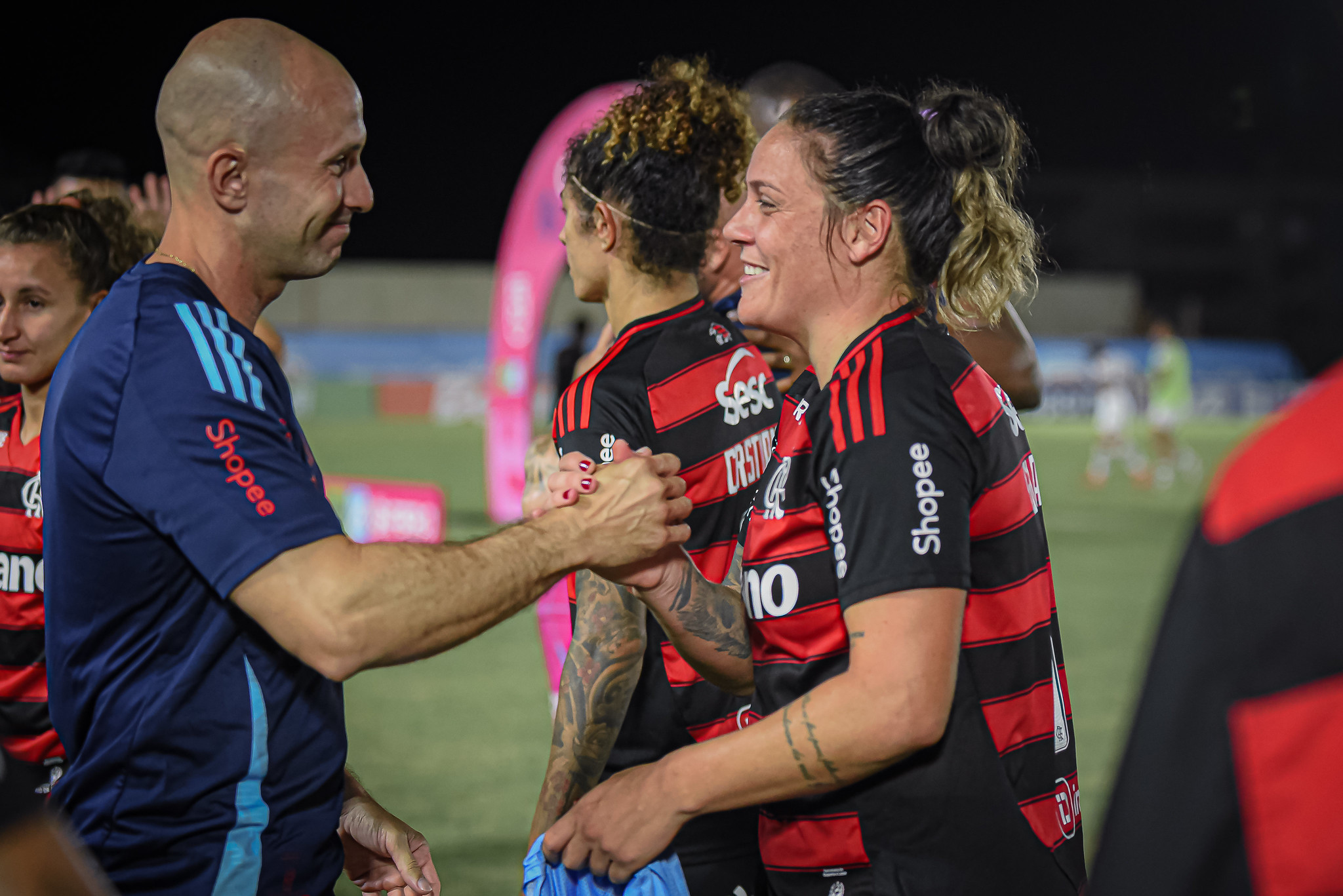“O meu sentimento com o Flamengo é diferente, porque estou literalmente desde o dia 1 do Futebol Feminino. Em 2015 eu já estava no clube, 2016, 2017, o título Brasileiro de 2016 eu estava como auxiliar. Participar de todo esse processo, eu vivi a criação da base do clube. Pude ser campeão da Copinha com a base, estive no título em 2021. ver todo esse processo, todo o contexto, essa linha do tempo completa, é um orgulho muito grande, por estar desde o primeiro dia de projeto, é muito prazeroso viver tudo isso. A  minha história no Futebol Feminino se confunde com a do Flamengo.”