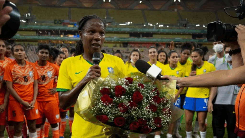 A despedida oficial de Formiga, em 25 de novembro de 2021, começou com a jogadora no banco. No final do primeiro tempo ela entrou em campo para auxiliar o Brasil que já estava na frente da Índia. O jogo acabou em 6 a 1 para a Seleção Brasileira.