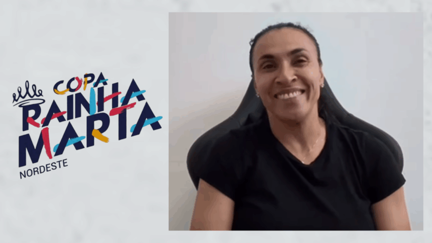 A Rainha Marta gravou uma mensagem de incentivo para as atletas que vão disputar o torneio que leva o nome da craque brasileira. A 1ª Copa Rainha Marta Nordeste de Futebol Feminino começou nesta terça-feira (4), em Alagoas.