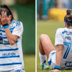 Todavia, se na troca de passes estava complicado, o desbloqueio veio na bola aérea. Já aos 5 minutos da etapa complementar, após cobrança de escanteio de Dani Montoya, Maria Dias, camisa 95 do Grêmio, subiu no segundo andar e abriu o placar para o tricolor.