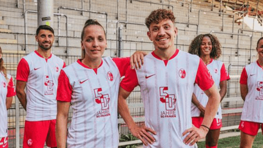 O clube alemão SC Freiburg criou uma camisa especial em comemoração aos 50 anos do Futebol Feminino. A estreia da vestimenta aconteceu neste domingo (12), pelo time feminino. No próximo dia 19, será a vez do masculino usar o uniforme.
