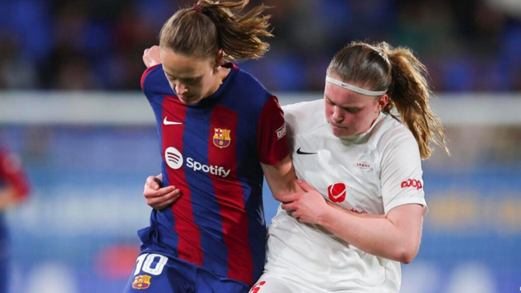 Signe Gaupset enfrenta Caroline Graham Hansen, do Barcelona, ​​na Liga dos Campeões Feminina de 2023/24.