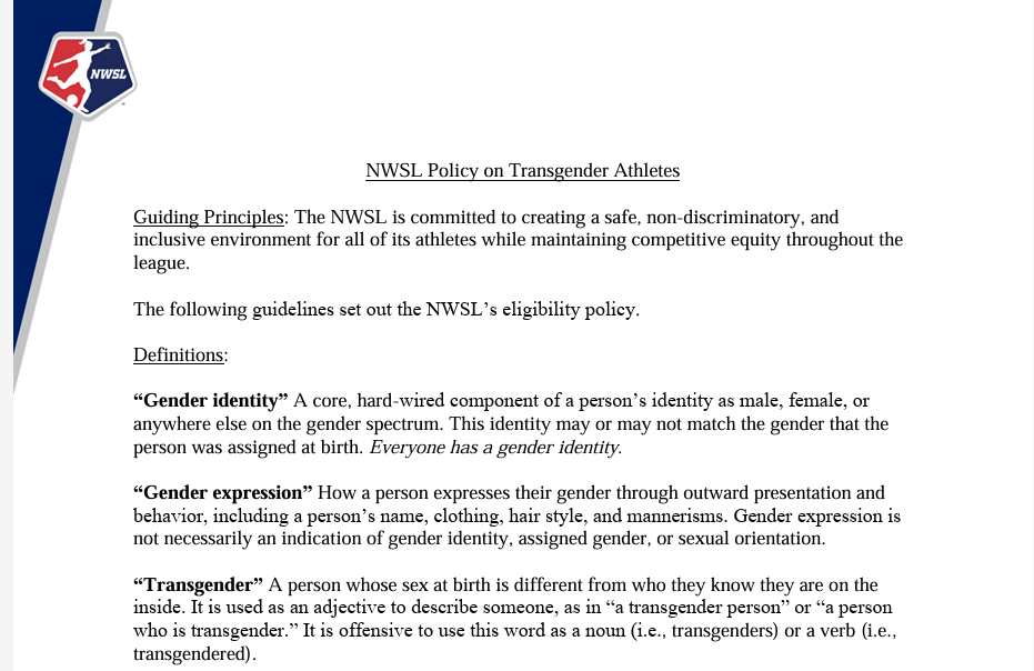 Parte do documento de políticas de gênero adotados pela NWSL (Reprodução Internet)