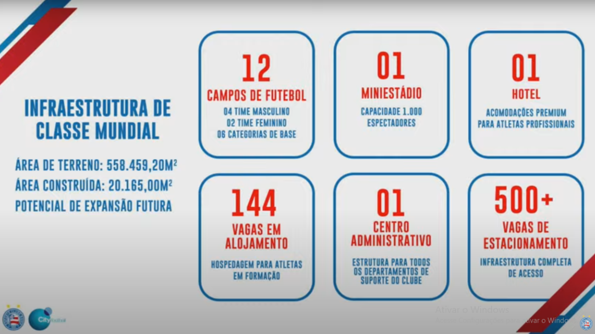 “O CFA Bahia será o segundo maior da rede, menor apenas que o Centro de Treinamento de Manchester; será uma janela para o talento baiano crescer e se conectar com o mundo. O investimento estará por volta de 300 milhões de reais .”