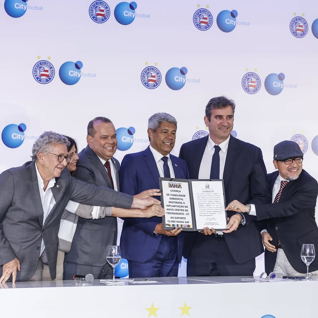 A Arena Fonte Nova foi palco, nesta segunda-feira (20), do evento de lançamento do novo centro de treinamento do Bahia. A solenidade contou com a presença do CEO do City Football Group (CFG), Ferran Soriano; do CEO do Bahia SAF, Raul Aguirre; do governador da Bahia, Jerônimo Rodrigues; do vice-governador Geraldo Júnior; e do prefeito de Camaçari, Carlos Caetano.