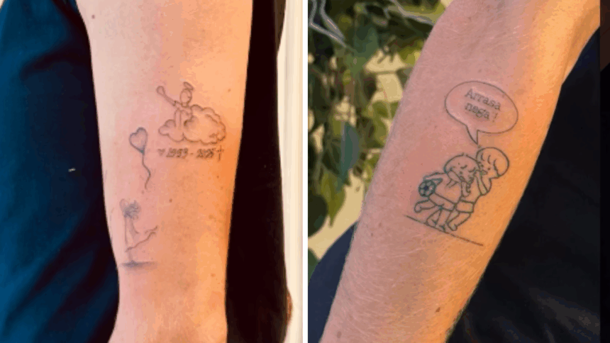 Os desenhos foram publicados pela tatuadora Larissa Oliveira. Em uma das imagens é possível ver Felipe em uma nuvem e os anos de nascimento e morte do irmão.