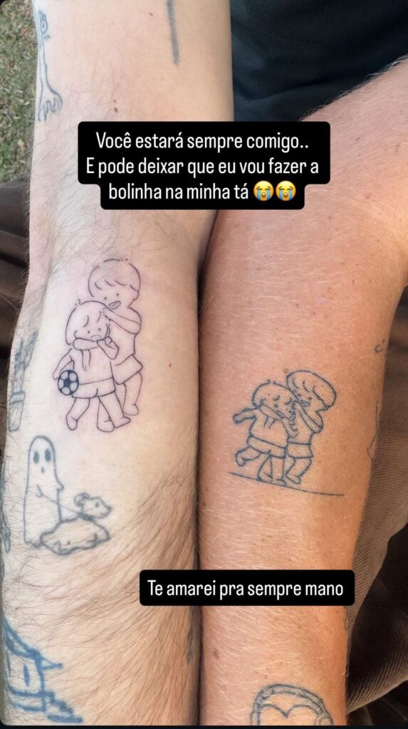 A arte mostra a ligação entre os dois, reforçando o carinho e a cumplicidade que sempre compartilharam. Ela contou que a tatuagem a lembra de momentos felizes e da força que Felipe sempre teve, servindo como uma lembrança constante da conexão entre eles.