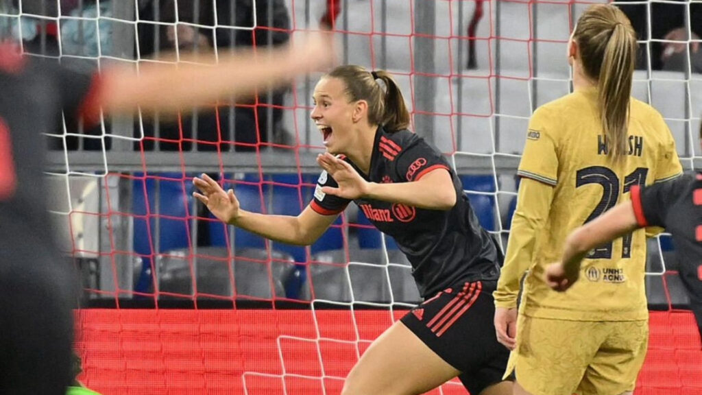 Bayern de Munique feminino comemorando um gol durante uma partida da UEFA Women’s Champions League. Foto: Wcgampionsleague oficial