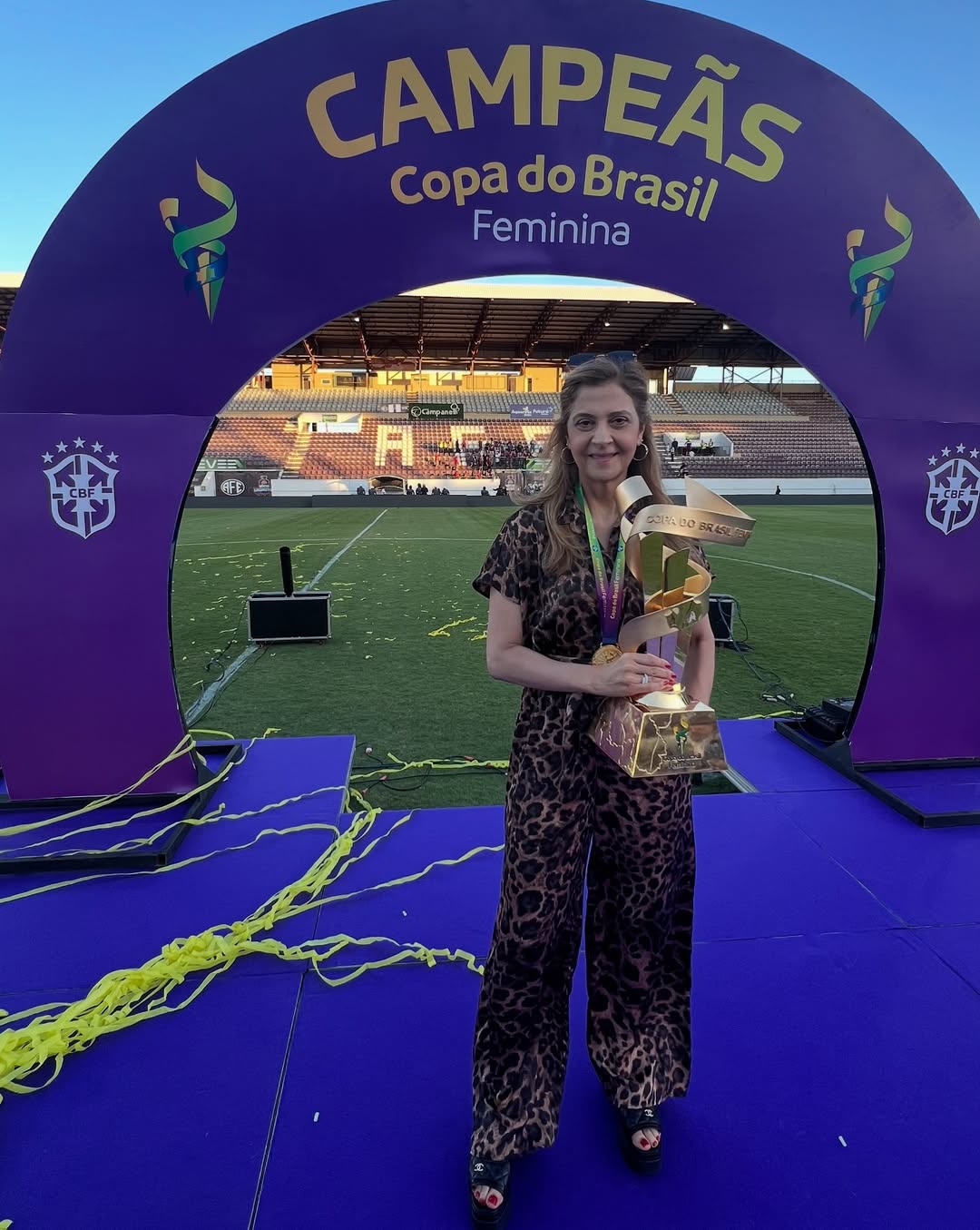 Leila Pereira celebra título do Palmeiras Feminino na Copa do Brasil – Reprodução Instagram @leilapereira