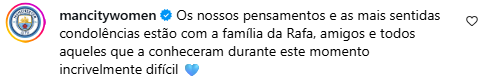 • Manchester City presta solidariedade a Kerolin após morte de ex