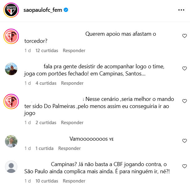 O ideal, porém, seria atuar no Morumbi ou em outro estádio da capital. No entanto, o clube precisou deslocar o mando por conta de shows agendados. A decisão gerou forte insatisfação entre torcedores, que agora terão de acompanhar a equipe longe e com acesso limitado.