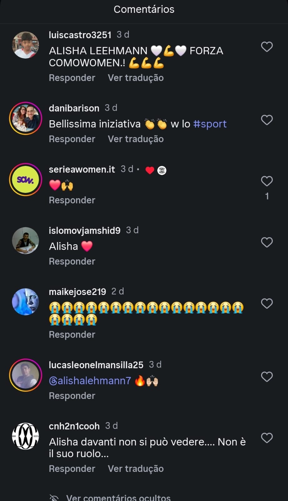 As redes sociais do time e da liga italiana foram impactadas pelo ”efeito Alisha Lehmann”. E é comum ver nos comentários de qualquer publicação, seguidores elogiando a atacante e seus atributos – pessoais ou profissionais.