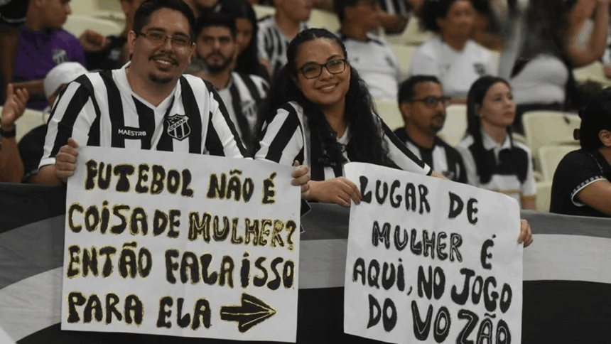 Com as luzes da Arena Castelão apagadas e com auxílio de celulares lanternas, a torcida do Ceará escreveu “onde ela quiser”, respondendo ao técnico Ramón Díaz que futebol também é um esporte para mulheres.