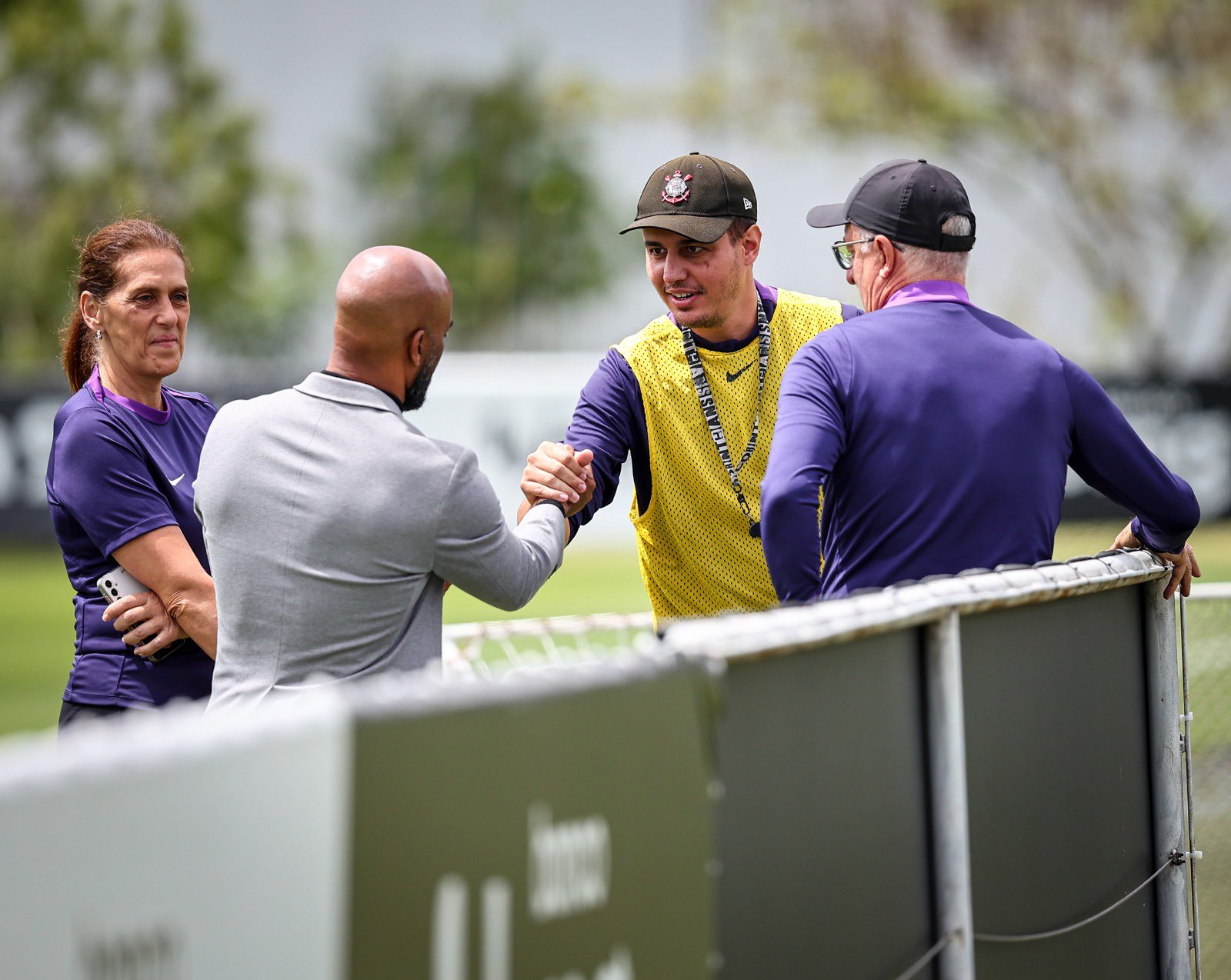 O treino do Corinthians recebeu um visitante nesta quarta-feira (29). O técnico Dorival Júnior, ao lado do executivo de futebol Fabinho Soldado, acompanhou parte das atividades comandadas por Lucas Piccinato no CT Joaquim Grava. A presença da dupla promoveu o encontro entre os departamentos masculino e feminino do clube. Além disso, destacou o reconhecimento ao sucesso recente das Brabas na Libertadores Feminina.