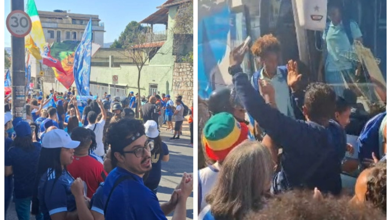 Final: jogadoras do Cruzeiro descem do ônibus no meio da torcida
