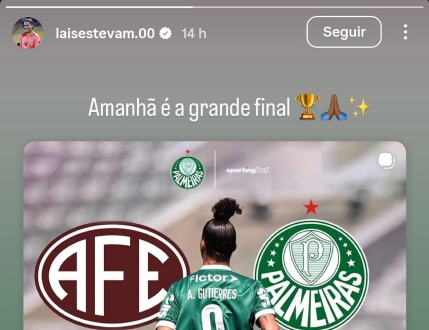 Desfalque após LCA, Laís Estevam apoia Palmeiras na final da Copa do Brasil