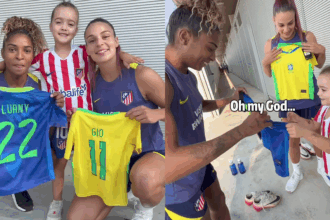 Momento fofura com Gio e Luany no CT do Atlético de Madrid