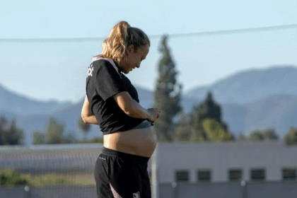 Grávida de 8 meses, Claire Emslie mantém treinos e impressiona em campo